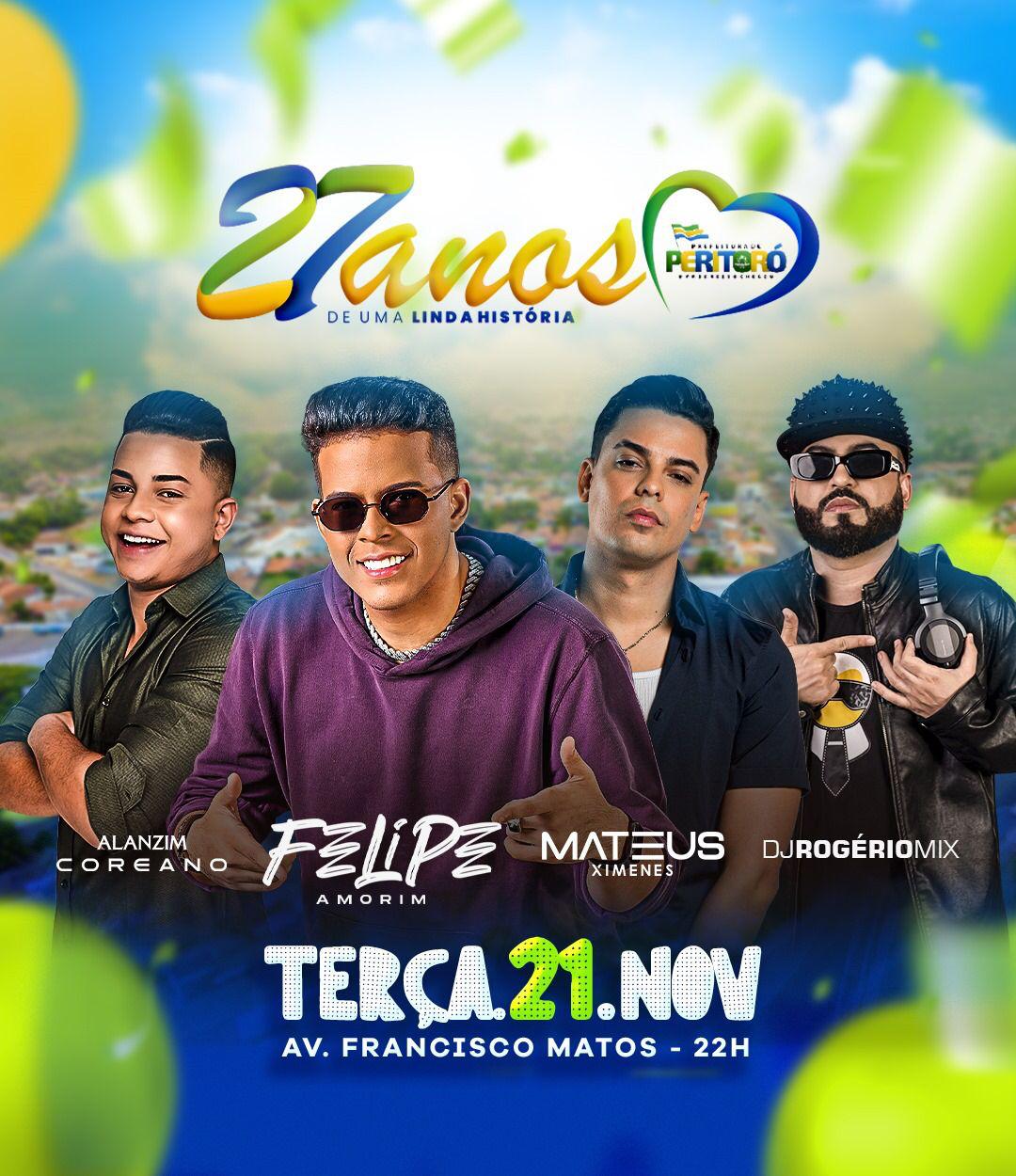 A celebração contará com a presença de talentosos artistas como Felipe Amorim, Alanzin Coreano, Matheus Ximenes e Dj Rogério Mix. Compartilhe essa notícia, marque os amigos e venha fazer parte desse evento que promete agitar a cidade em grande estilo.