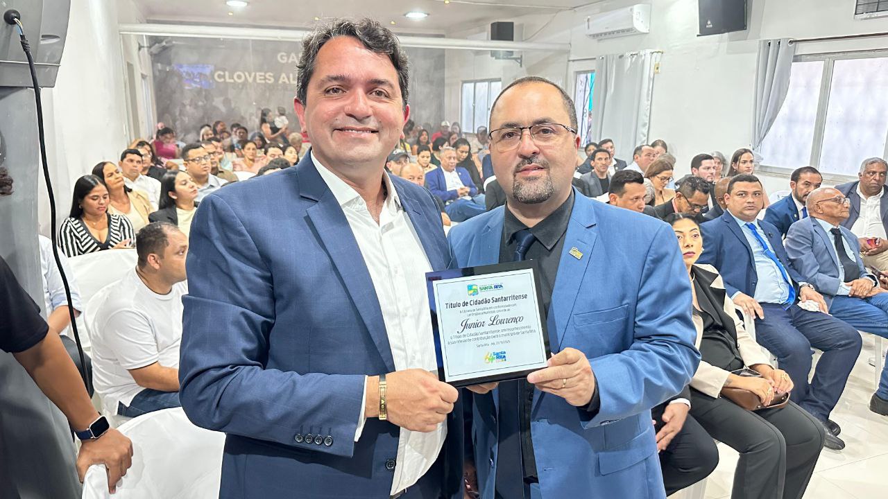A Câmara Municipal de Santa Rita entregou, na noite da última quinta-feira (27), o título de Cidadão Santaritense ao deputado Júnior Lourenço.